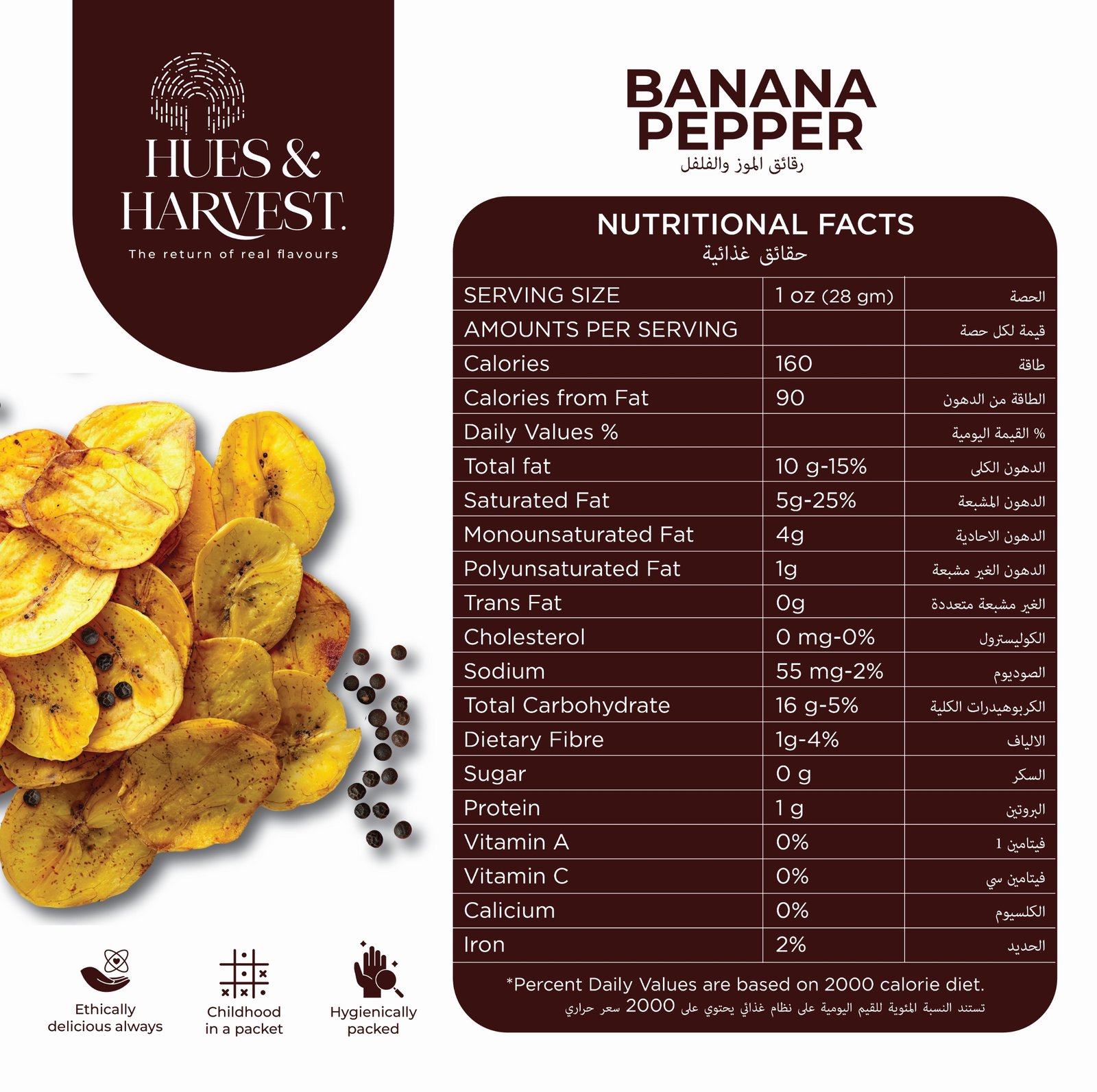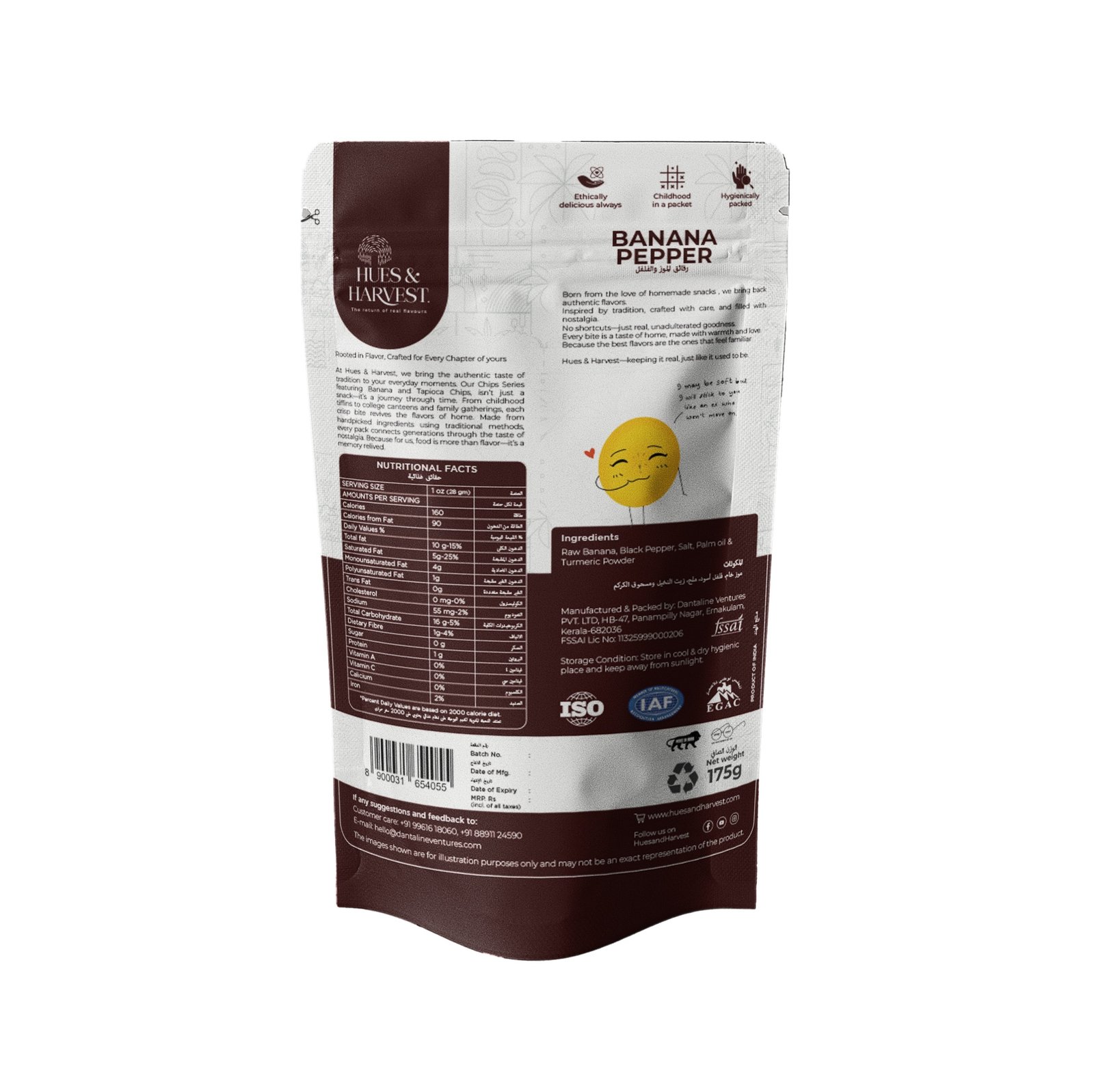 At Hues & Harvest, we bring you the authentic crunch of Kerala banana chips made from real, perfectly sliced bananas fried in pure coconut oil. Lightly seasoned with aromatic black pepper, our chips offer the perfect balance of spicy heat and crispy texture. Crafted with high-quality ingredients, they deliver the true flavors of South India in every bite. Perfect for tea time, parties, or anytime you want a delicious, crunchy snack!